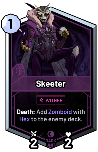 Nerfed. The Discovery winrate has been plenty strong, and Skeeter has found a role in constructed against low-unit decks.