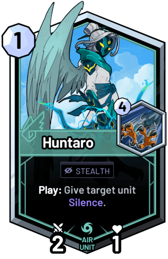 Text: Do 2 Damage to target unstealthed enemy. Reveal units in the enemy hand. β Do 2 Damage to target unstealthed enemy. Reveal the enemy's high-cost cards in hand.